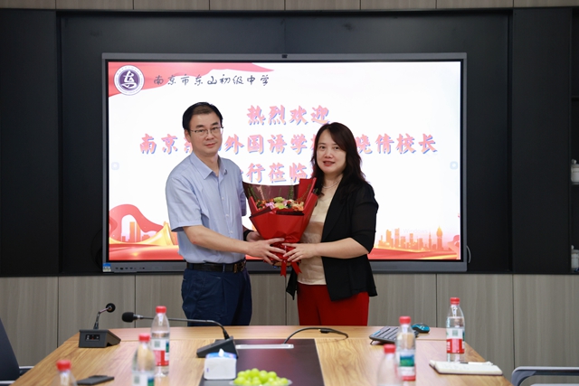 随后,双方在会议室举行交流座谈。期间,我校郭晓倩校长与在滨江新城学校支教的葛生亮老师亲切交谈,详细了解其工作开展与日常生活等情况,对他的辛勤付出表示衷心感谢,并为其送上鲜花。郭校长表示,支教经历是人生中一段难忘的宝贵经历,她鼓励葛生亮老师继续发扬奉献精神,在支教岗位上发光发热,为东外分校的教育事业发展添砖加瓦。