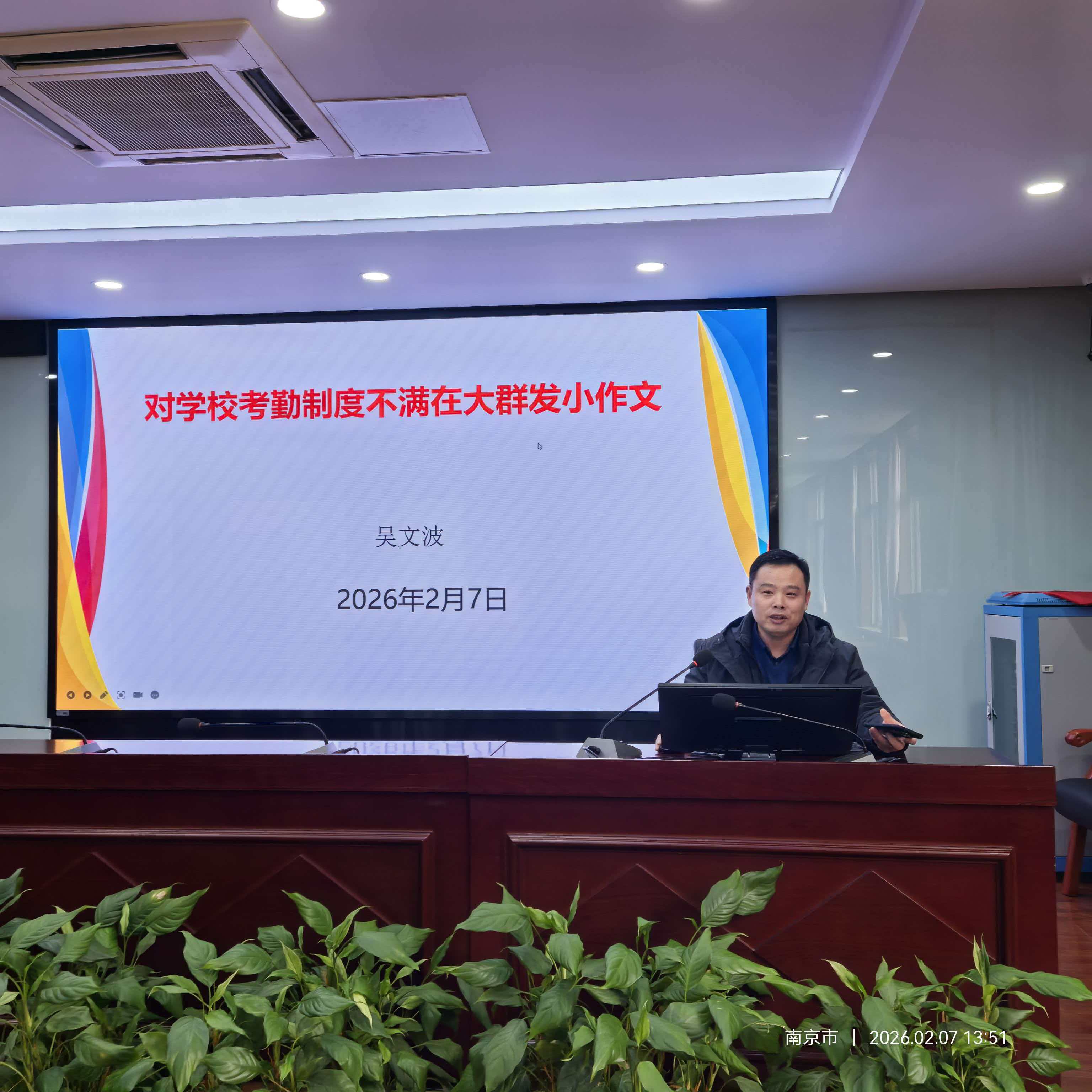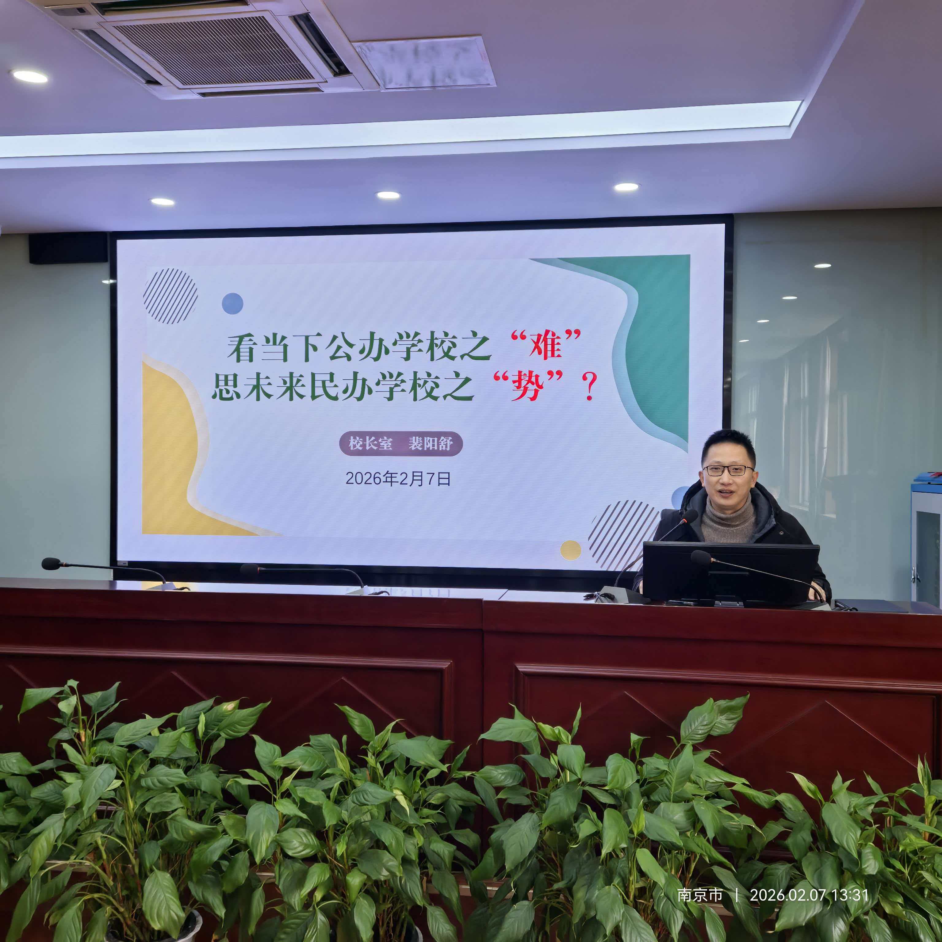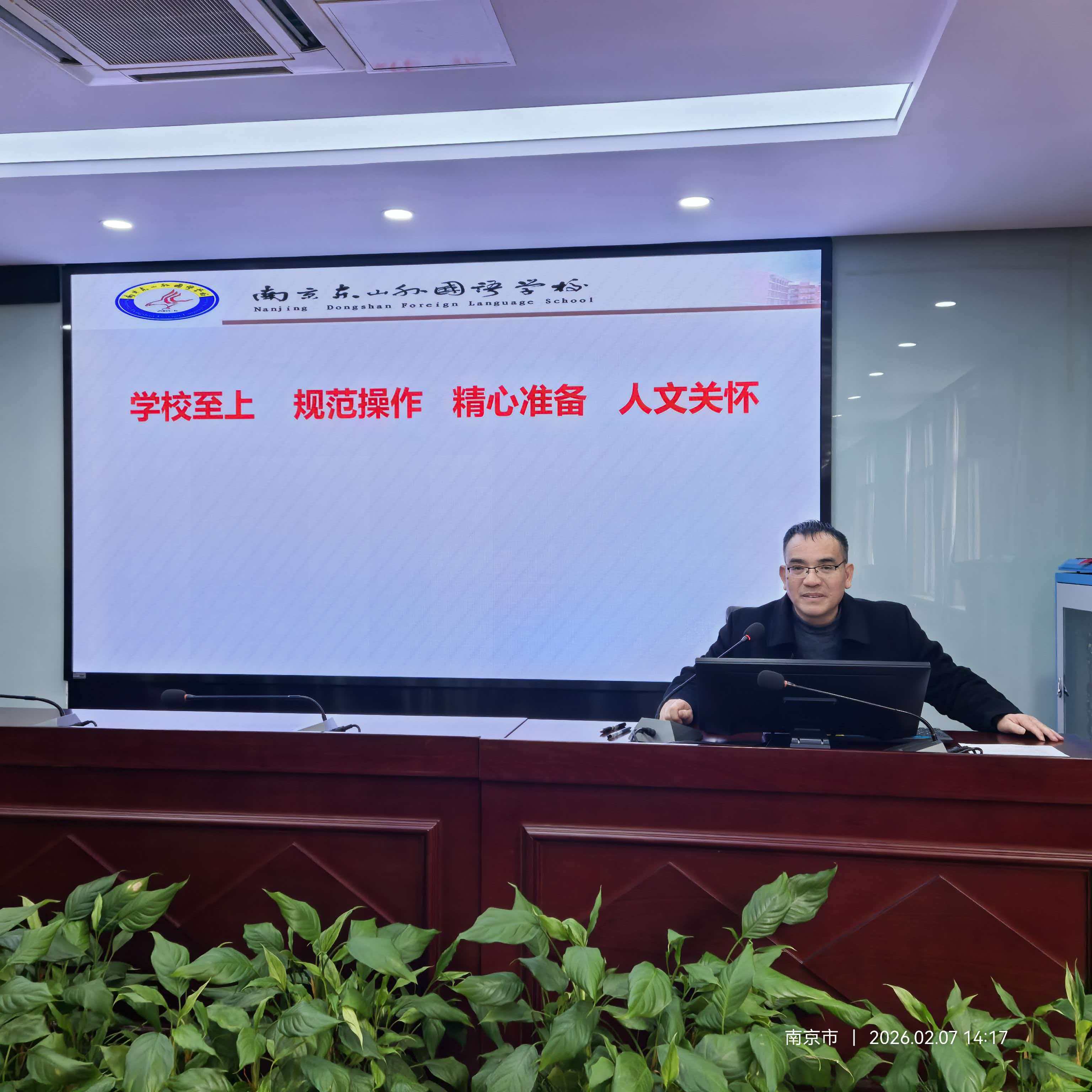 2026年2月7日,南京东山外国语学校全体行政领导齐聚学校第三会议室,举行2025-2026学年第一学期行政工作案例交流会。会议以“深耕案例促成长 聚力笃行向新程”为主题,通过案例复盘与经验分享,集中展现学校行政团队在实际工作中展现出的执行力、问题意识与反思能力,为学校治理效能提升凝聚智慧、积蓄力量。