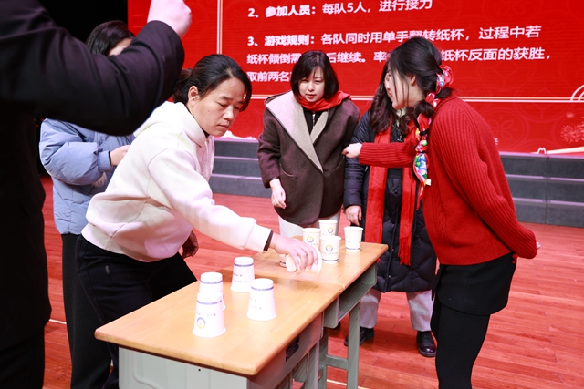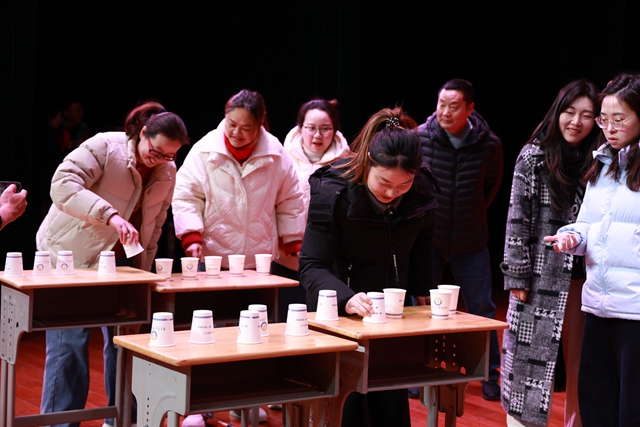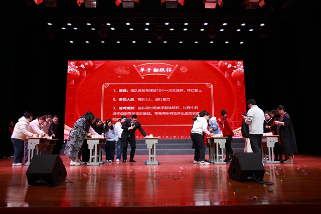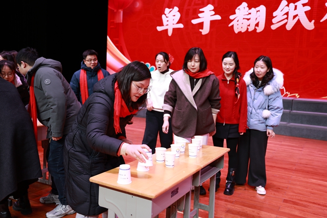 紧随其后的小游戏《单手翻纸杯》,考验个人技巧和互相配合,紧张刺激,将现场气氛推向一个小高潮。