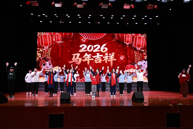 金蛇辞旧,骏马迎春。为喜迎2026年新春佳节,凝聚全体教职工的向心力与归属感,展现东外人昂扬奋进、多才多艺的精神风貌,我校于2月6日下午隆重举行了以“龙马精神展宏图,东外风华启新篇”为主题的教职工迎新年团拜会。学校领导与全体教职工欢聚一堂,共叙情谊,同贺新春。