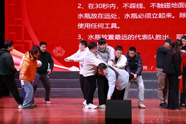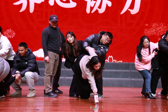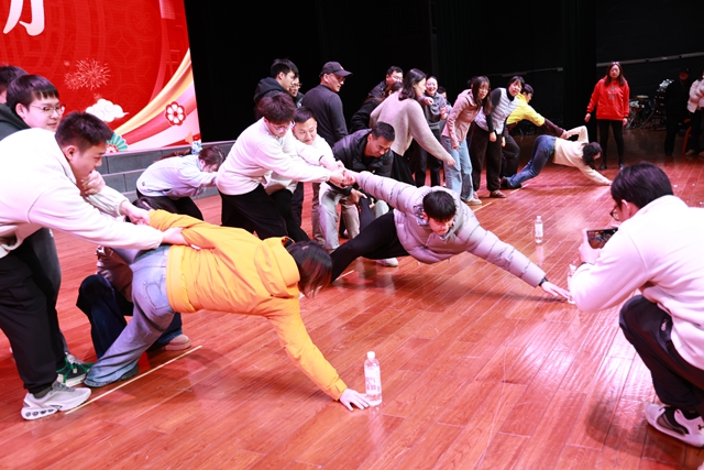 随后进行的互动小游戏《齐心协力》,要求团队成员默契配合,共同完成挑战,大家齐心协力、互相配合,极大地增进了彼此间的感情。
