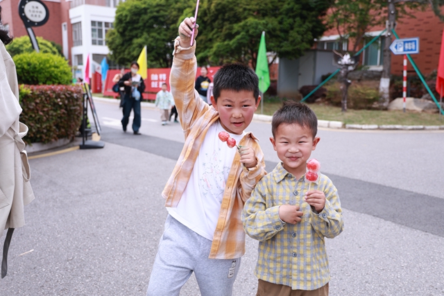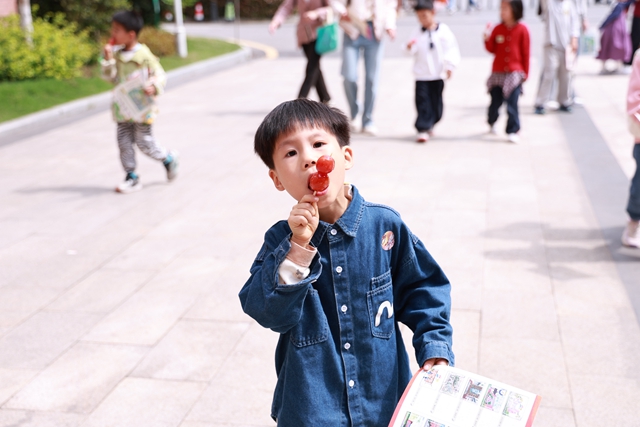 游园结束后,大家来到校园东门,凭完成的校园十景打卡游园券,免费领取一串现制冰糖葫芦。酸甜可口的糖葫芦,为本次欢乐之旅画上最甜蜜的句号。孩子们手持糖葫芦,脸上洋溢着满足的笑容,在欢声笑语中有序离校。