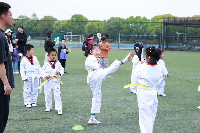 跆拳道、轮滑、篮球、飞镖、足球社团展示精彩纷呈,跑跳投掷间尽显活力,小小身影元气满满。