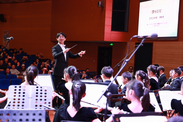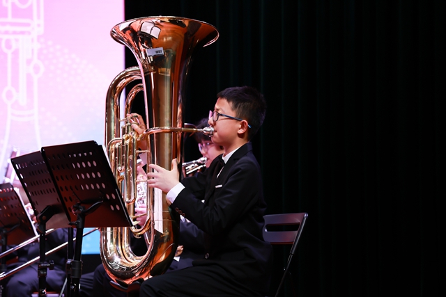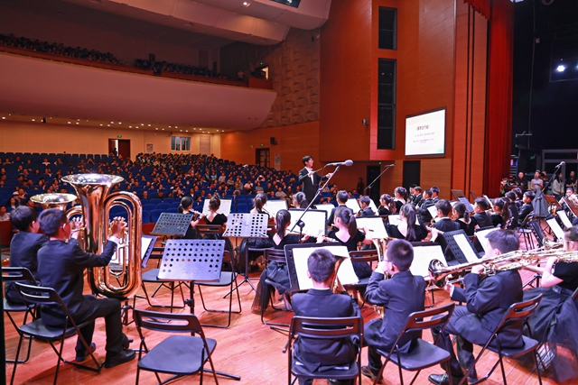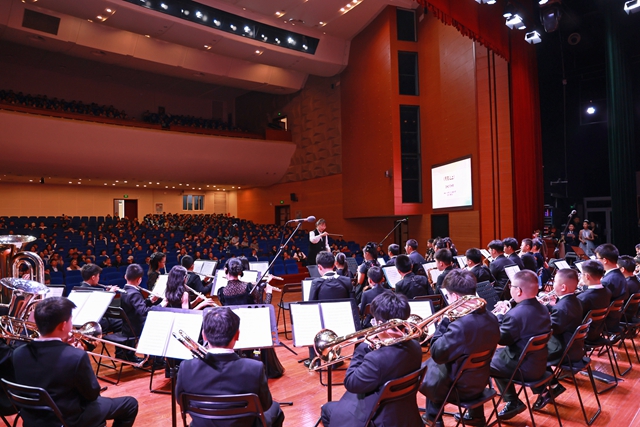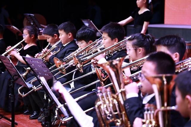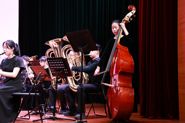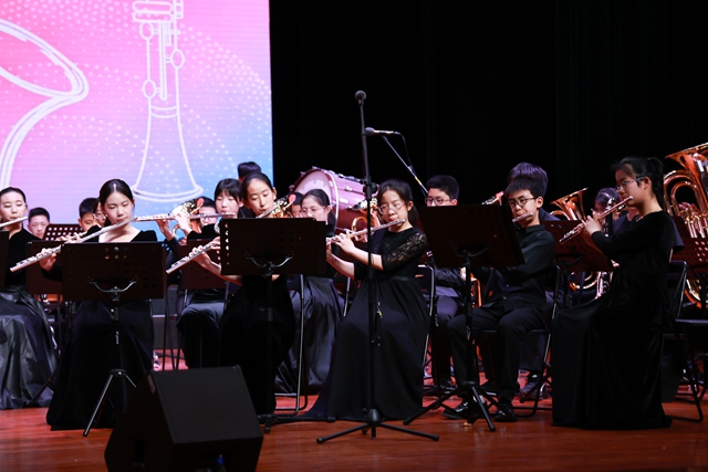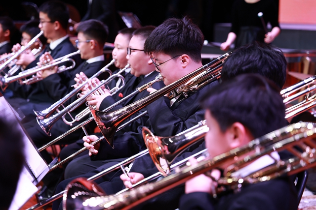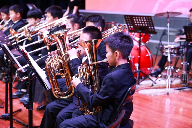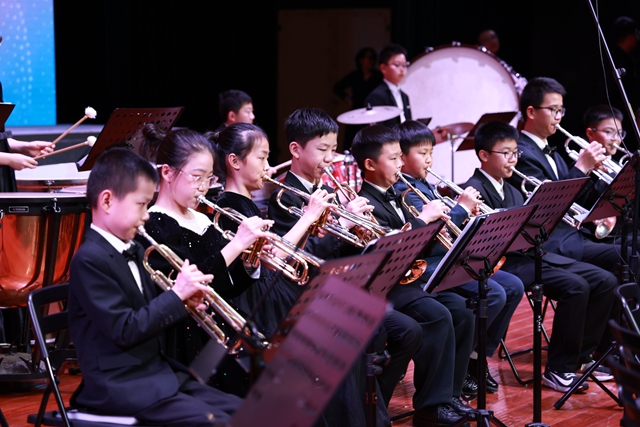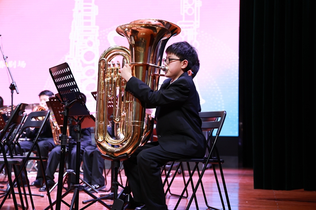 最后,全体管乐团成员携手登台,共同奏响《歌唱祖国》,雄浑激昂的乐声直冲云霄,将现场气氛推向高潮,也抒发了青少年对祖国的深切热爱与美好祝福,为演出画上圆满句号。