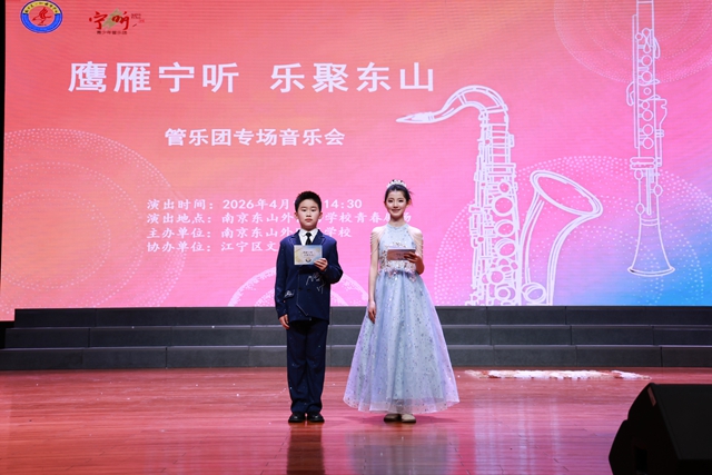 本场音乐会由东外小学部和初中部的四支管乐队伍与江宁区“宁听”管乐团联袂出演。音乐会以“鹰雁宁听 乐聚东山”为主题,寓意东外鹰雁管乐团与宁听乐团并肩逐梦、共谱华章。