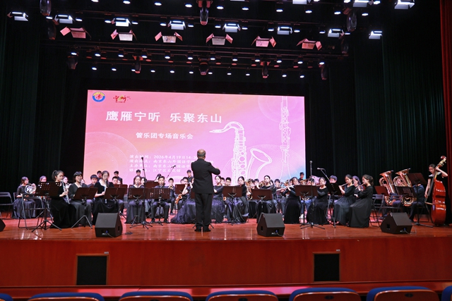 2026年4月19日下午,东外青春剧场内华灯璀璨,旋律激昂,“鹰雁宁听 乐聚东山”管乐专场音乐会在此隆重举行。