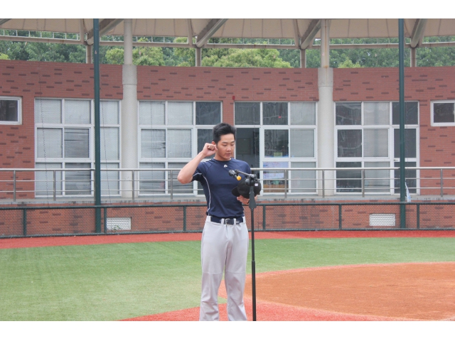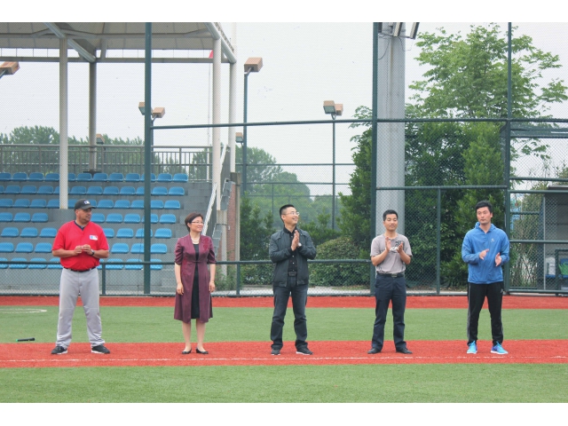 开球仪式上,魏先虎副校长代表学校做了开幕词,并隆重宣布了本届联赛开幕。随后,裁判员代表和运动员代表向全场观众庄严宣誓。开幕式的最后,在场嘉宾和我校棒球队队员,完成了开球仪式。