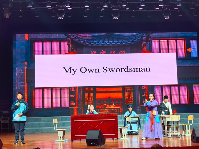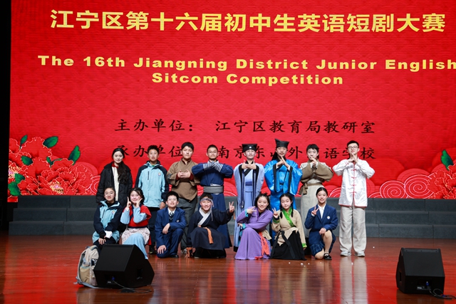 2025年12月30日,江宁区第十六届初中英语短剧比赛在我校青春剧场拉开帷幕。经评委会综合评审,我校英文短剧作品“My Own Swordsman: The Wisdom Showdown”《武林外传・秀才智斗姬无命》,凭借其创新的改编思路、纯熟的英语演绎、精巧的舞台设计及深刻的主题表达,荣获大赛一等奖。初二(11)班邱晟恩、初二(7)班胡铧文、初一(1)班张少骞荣获最佳语音奖。初二(11)班石尚、初二(3)班蔡郡、初二(8)班王芷馨荣获最佳表演奖。初二(11)班邱晟恩、初二(10)班杨仕羽荣获最佳主持人奖。