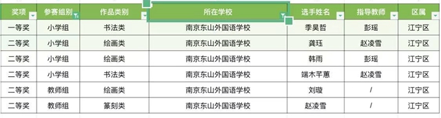 近日,从南京市教育局传来喜讯,在南京市第四届“金陵印象”篆刻比赛暨第七届“宁海杯”中小学书画大赛中,经过区级比赛和市级现场命题复赛的层层选拔,我校小学部6名师生从众多参赛者中脱颖而出,荣获市一、二等奖。其中,五(2)班季昊哲同学荣获书法类一等奖,四(1)班端木芊蕙同学荣获书法类二等奖,五(2)班韩雨、四(1)班龚珏同学荣获绘画类二等奖,美术组教师刘璇老师荣获绘画类二等奖,赵凌雪老师荣获篆刻类二等奖。