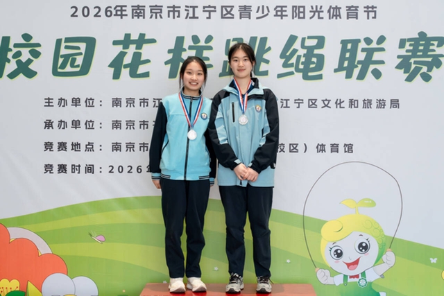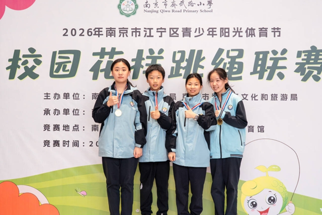 近日,2026年江宁区跳绳比赛在齐武路小学文齐路校区圆满落幕,我校26名参赛队员表现出色,凭借精湛技艺与默契配合,在多个项目中脱颖而出,斩获佳绩。最终,我校“灵动”花样跳绳队获得初中组团体一等奖,共收获14金2银1铜的傲人成绩,彰显了我校跳绳项目较高的教学水平与比赛技能。
