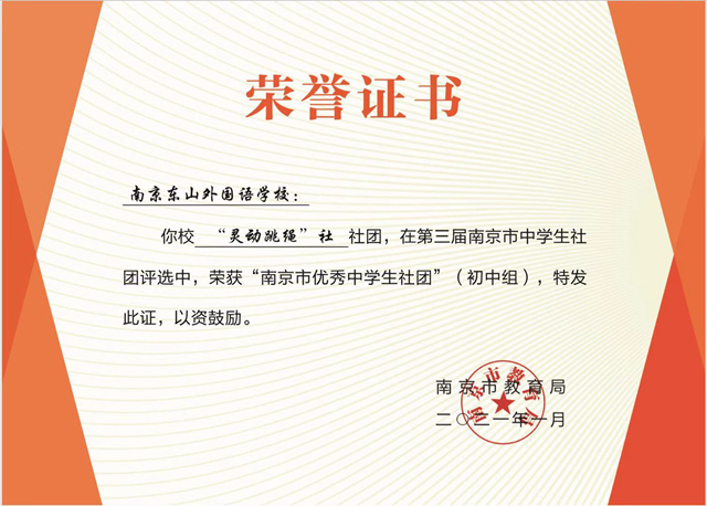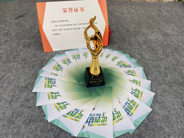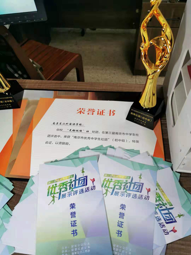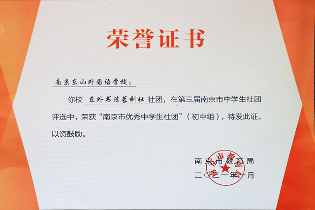 “书法篆刻”社在南京市教育局举办的第三届南京市中学生优秀社团评中双双荣获“南京市优秀中学生社团”。
