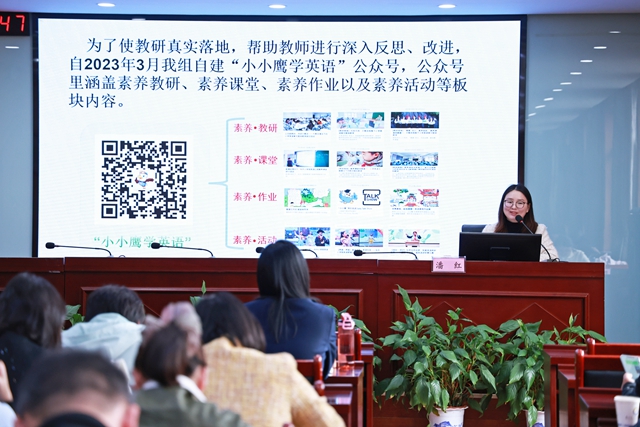 下午,专题分享会在第三会议室举行。曹丽萍老师则围绕《深耕特色办学,赋能学生成长——基于核心素养的特色课程与活动建设》,深入阐述我校特色办学理念、特色课程体系构建及学生核心素养培养的实践路径,为来访校长们提供了特色办学的宝贵借鉴;潘红老师以《研精致思,减负提质:“双减” 背景下英语教学管理与实践创新》为题,结合“双减”政策要求,分享了我校在英语教学管理、课堂创新、减负提质等方面的具体举措与实践经验。