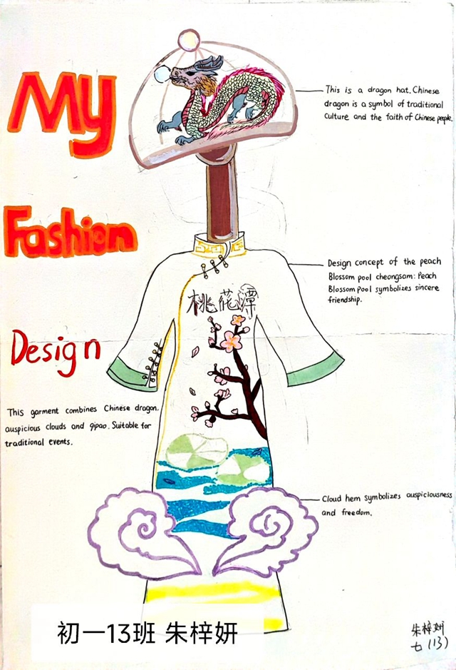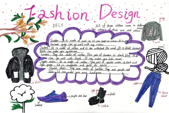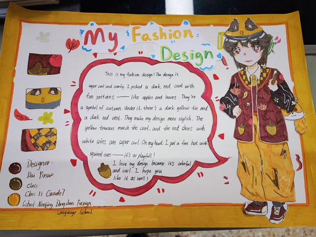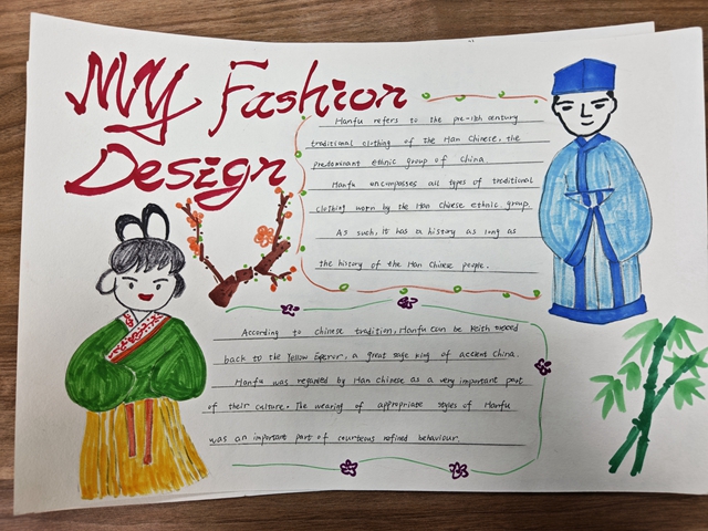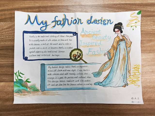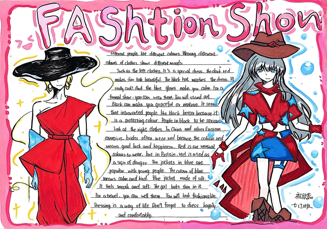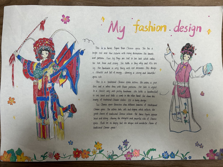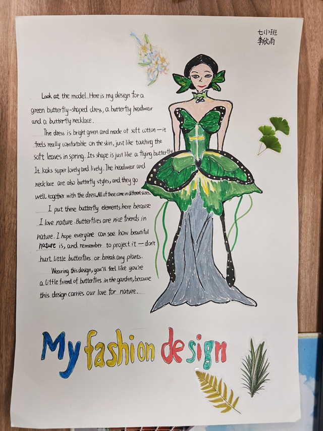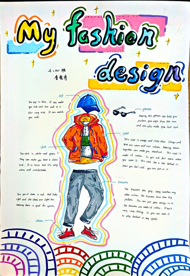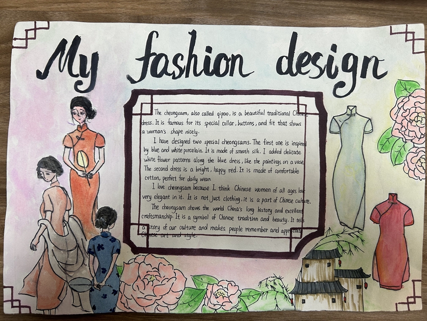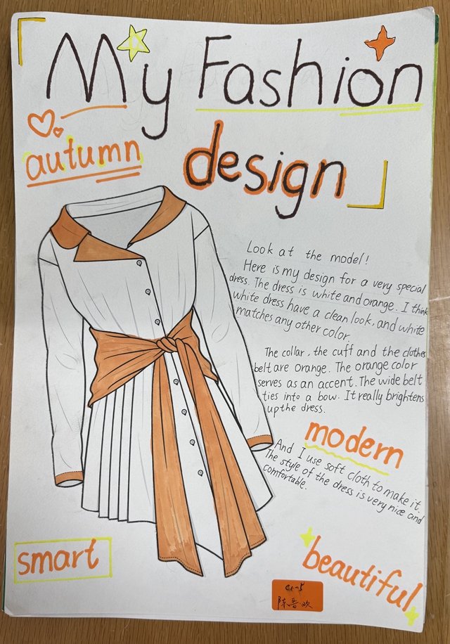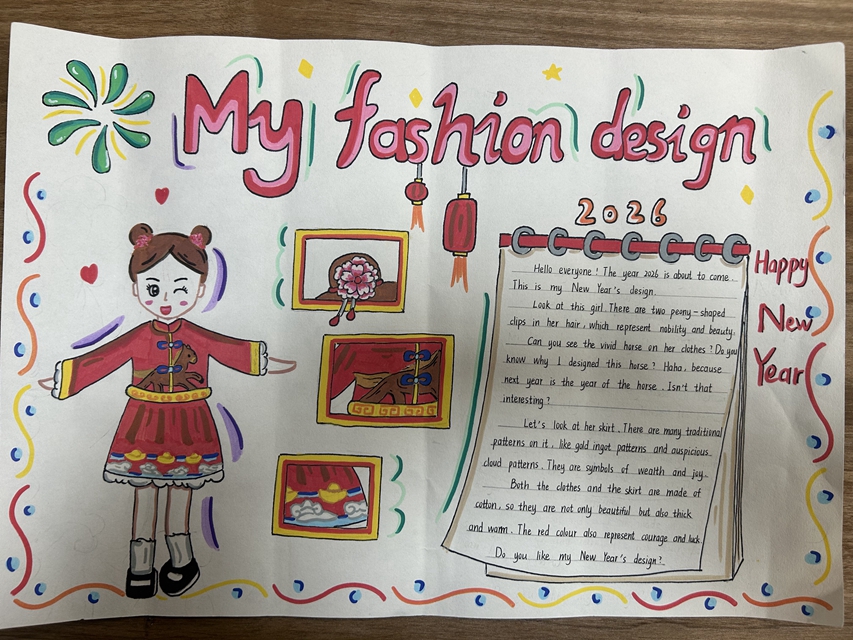 与此同时,本次英语节还开展了以My Fashion Design为主题的英语手抄报比赛。同学们围绕“我的时尚设计”这一主题,化身小小设计师,将天马行空的时尚构想落于笔尖。