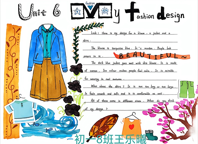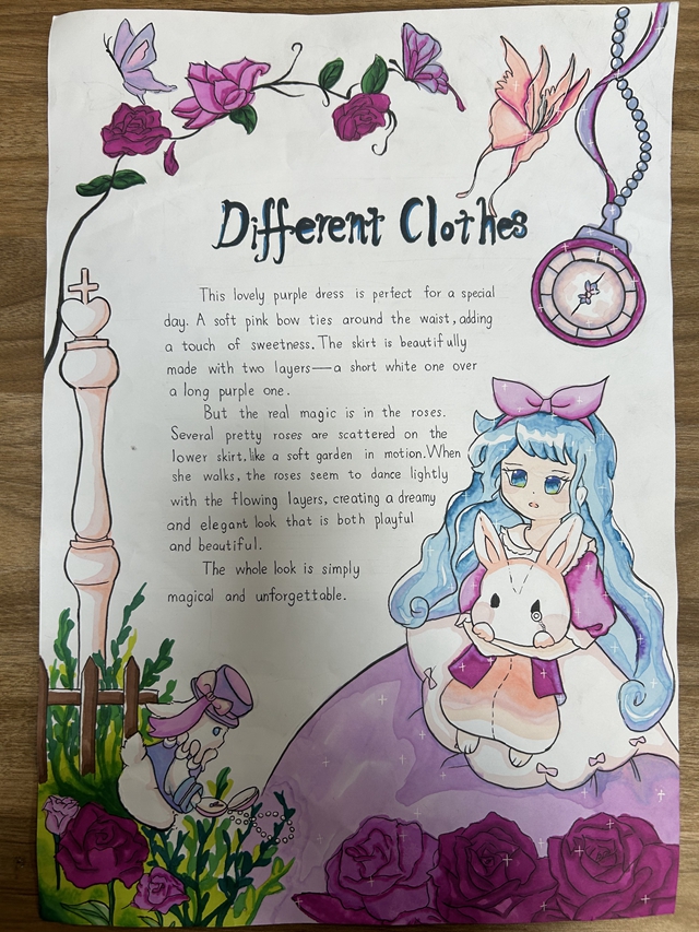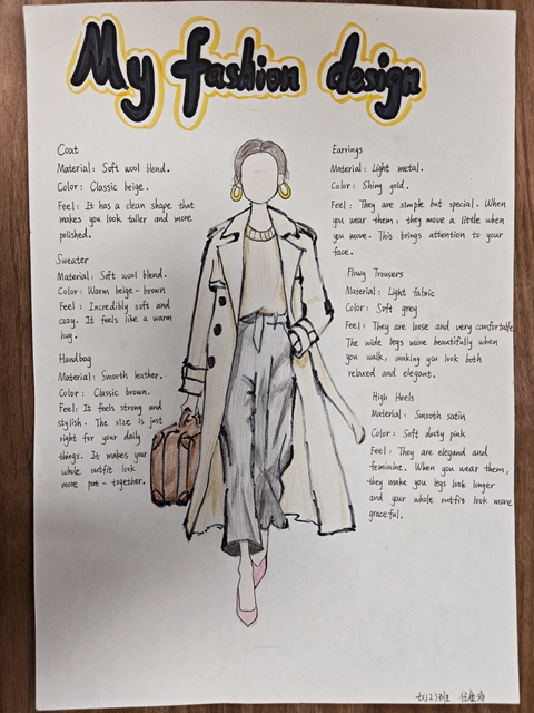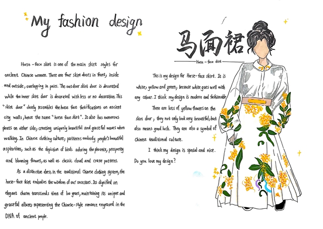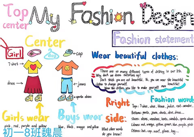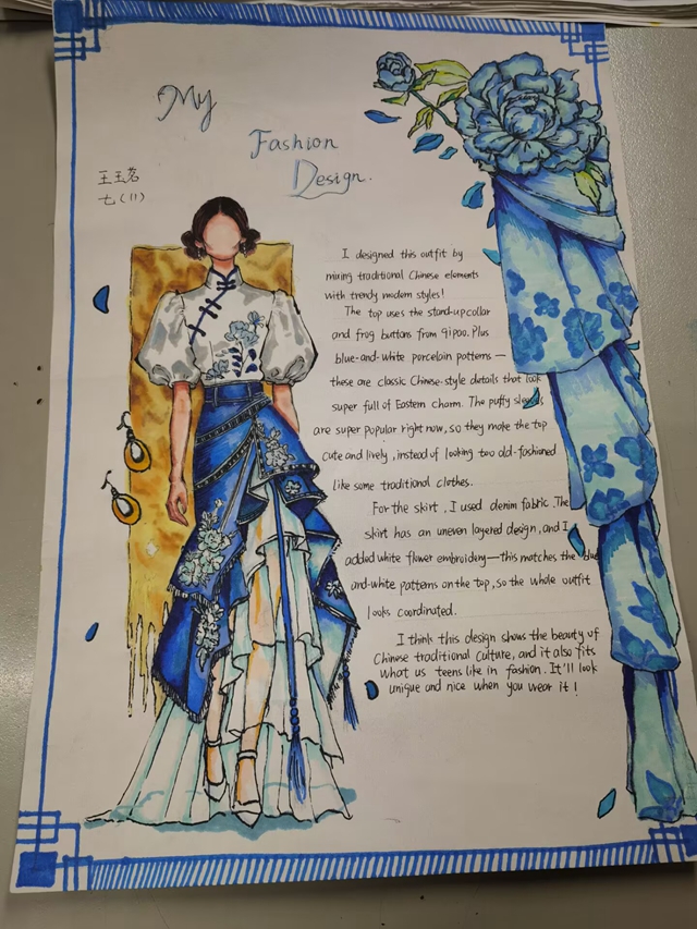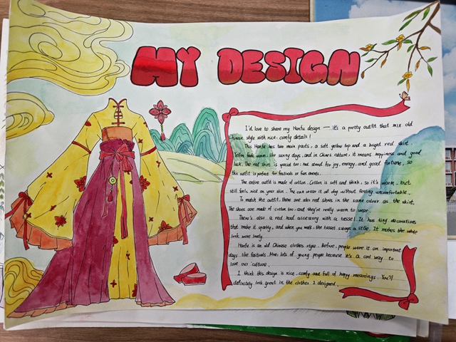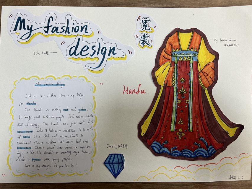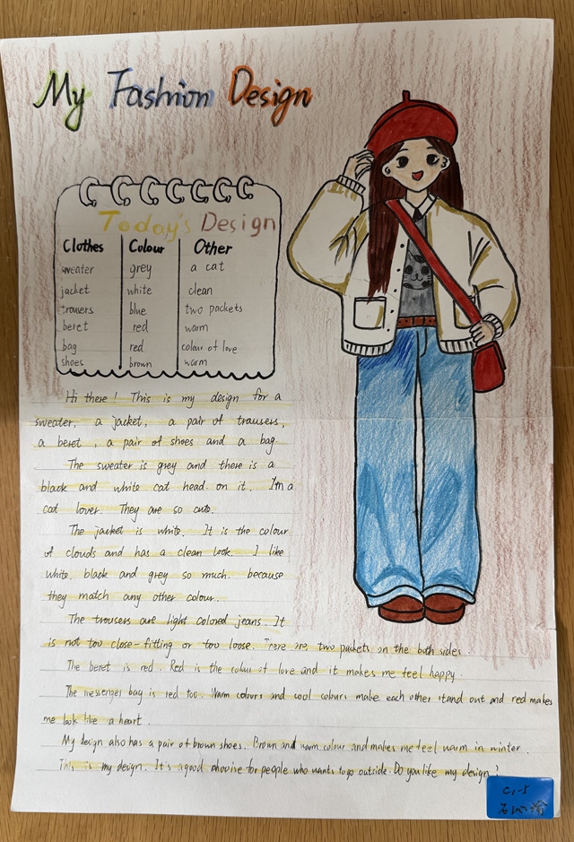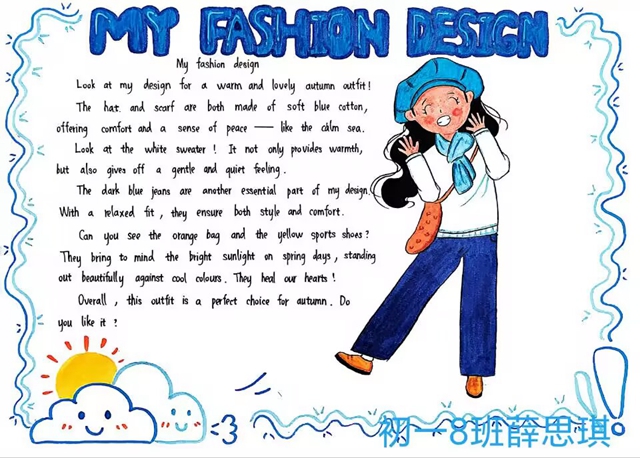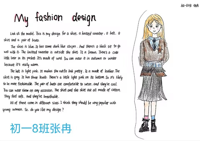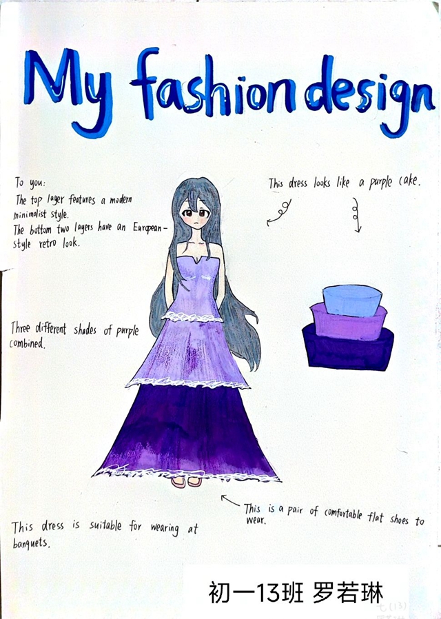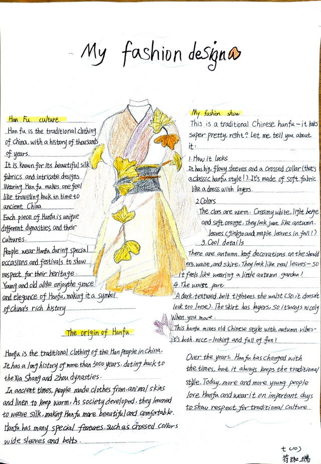 与此同时,本次英语节还开展了以My Fashion Design为主题的英语手抄报比赛。同学们围绕“我的时尚设计”这一主题,化身小小设计师,将天马行空的时尚构想落于笔尖。