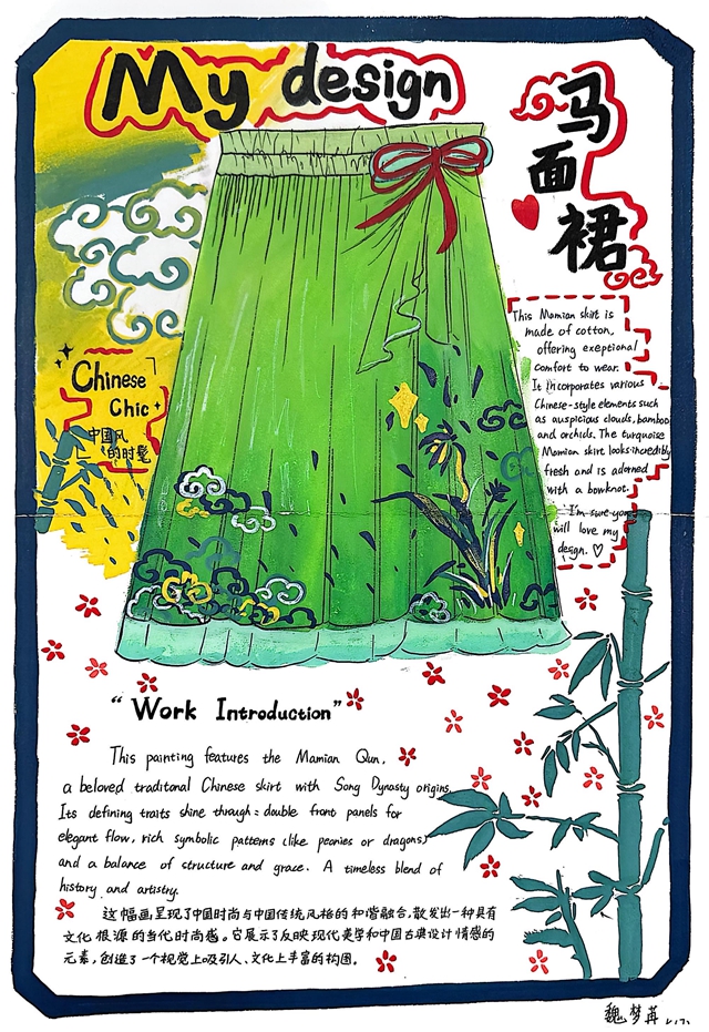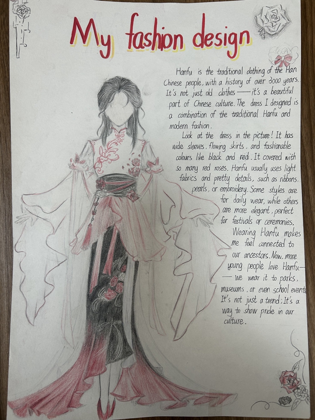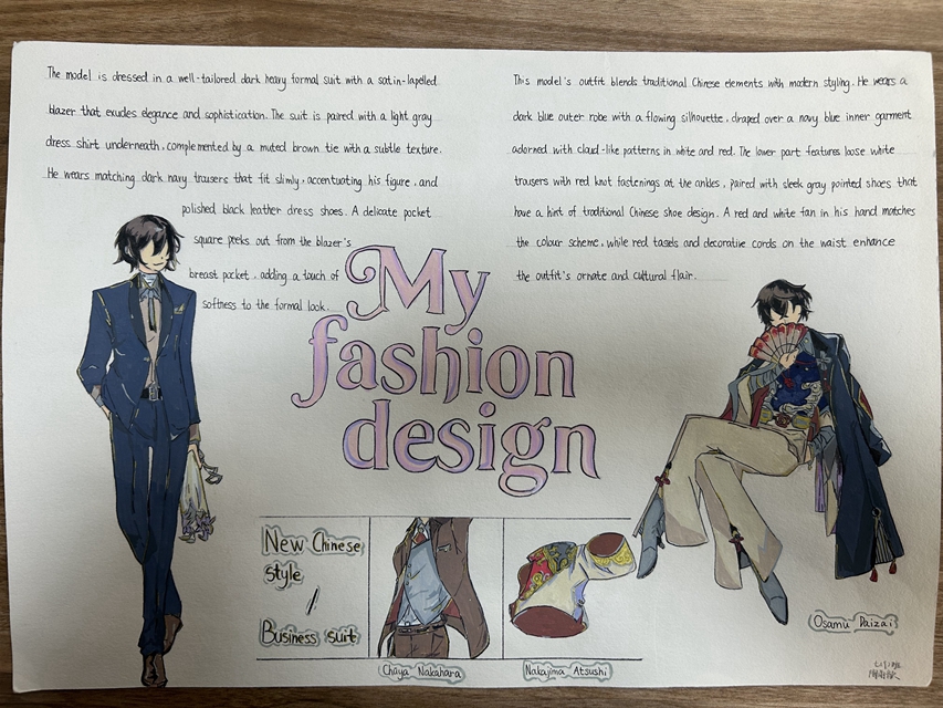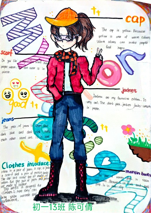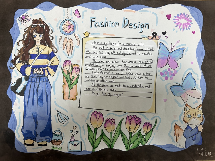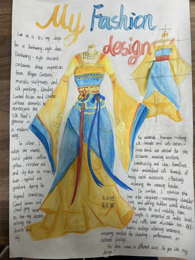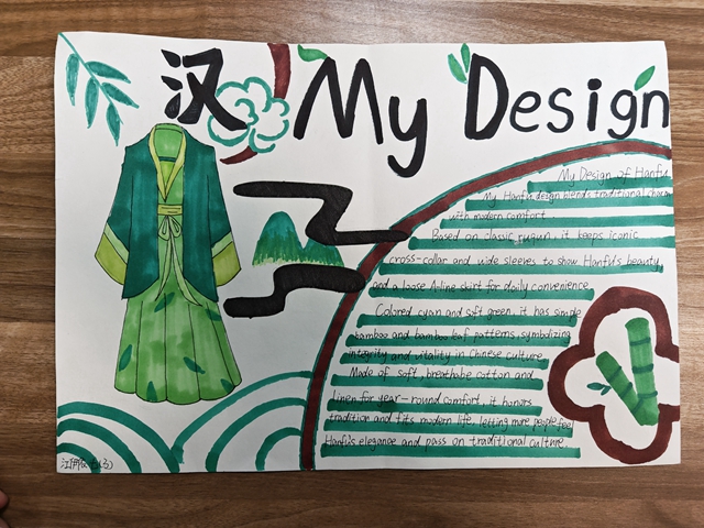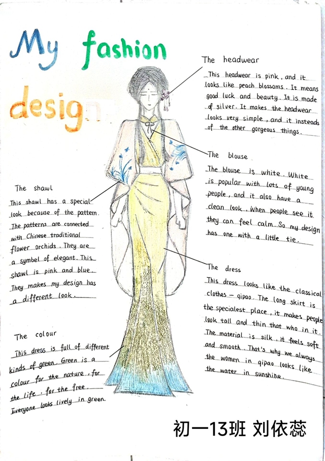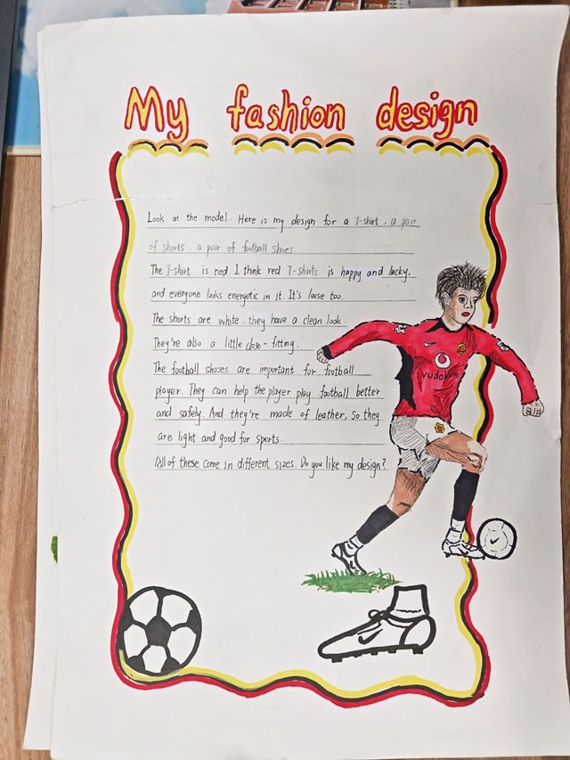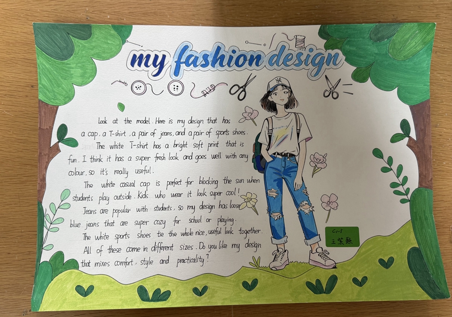 与此同时,本次英语节还开展了以My Fashion Design为主题的英语手抄报比赛。同学们围绕“我的时尚设计”这一主题,化身小小设计师,将天马行空的时尚构想落于笔尖。