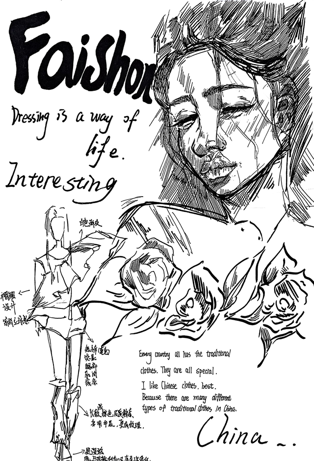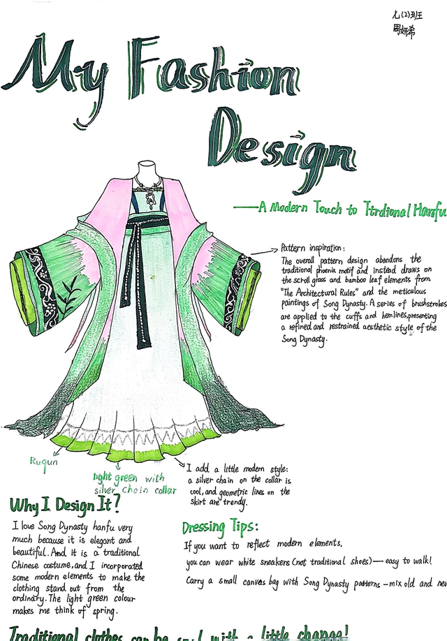 充满未来感的环保服饰设计、融合传统元素的国风穿搭、工整流畅的英文、色彩明快的插画……让每一张手抄报都兼具知识性与观赏性。