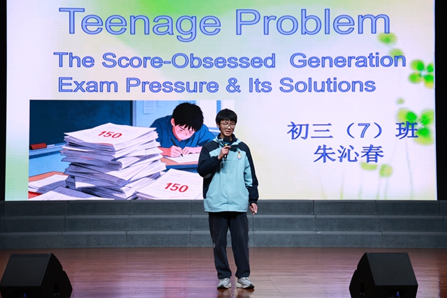本次活动由初三英语备课组精心策划筹备,历经近一个月的班级海选、年级复赛层层筛选,最终,从全年级13个班级中脱颖而出的26名优秀选手,带着精心打磨的演讲稿与饱满的热情,站上了决赛的舞台。决赛现场,选手们围绕“青春与梦想”“责任与担当”“成长的力量”“科技与未来”“家国在我心”5个核心话题,展开3分钟的限时演讲。