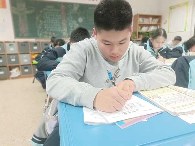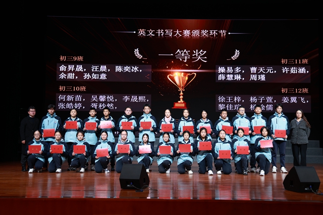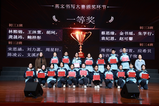 同时,我校于 12 月 15 日举办了初三年级英语书写大赛。赛场上,同学们以笔为媒,既展现出对英语学习的热忱,又彰显了扎实的书写功底。经过评委老师的严格评审,65名同学脱颖而出。