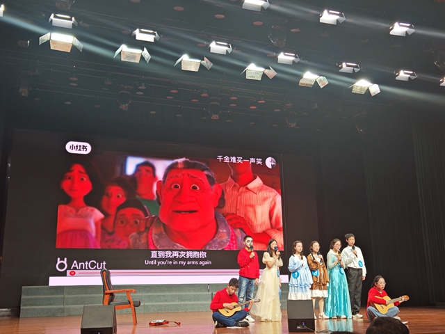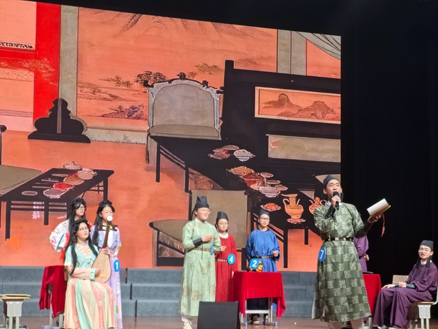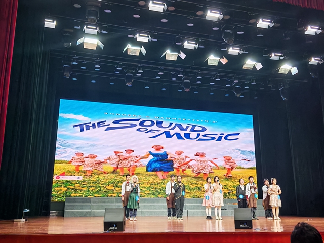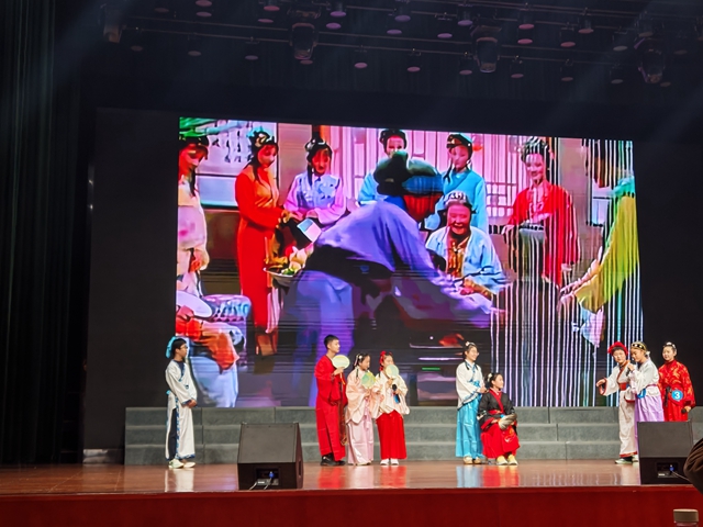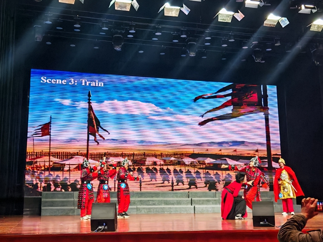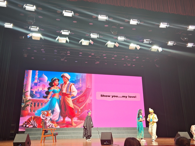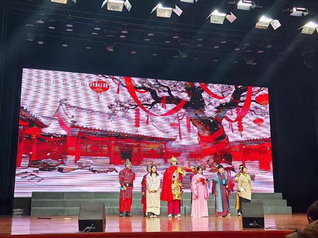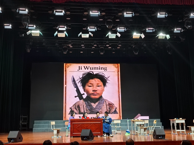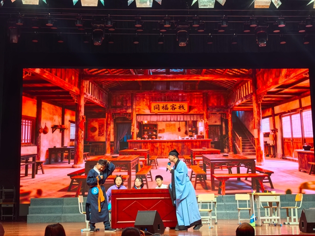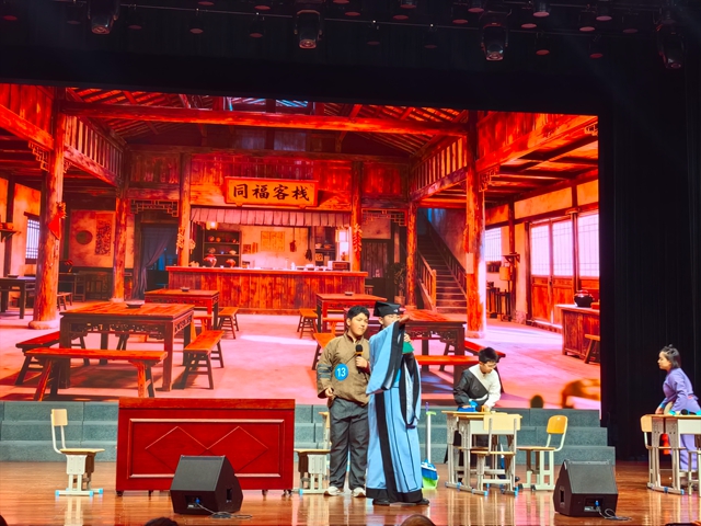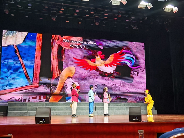 本次比赛的参赛剧目题材覆盖面广、立意深刻多元,堪称一场“百花齐放”的文化展演。我校参赛作品《武林外传・秀才智斗姬无命》,在王灿、陆小双、马文静三位老师的悉心指导打磨下,同学们凭借地道流利的英语,生动复刻了同福客栈的名场面。