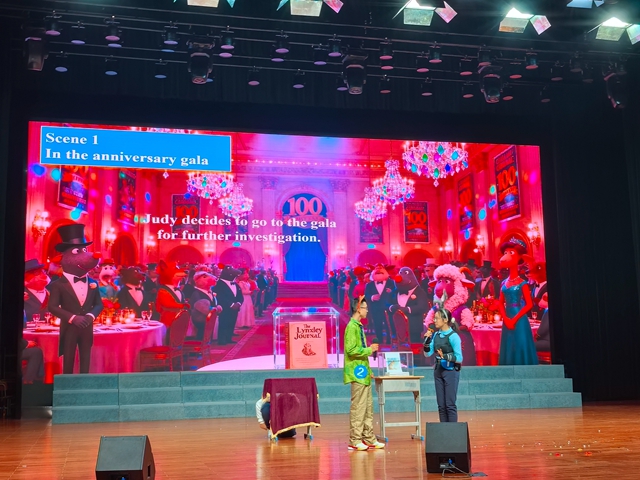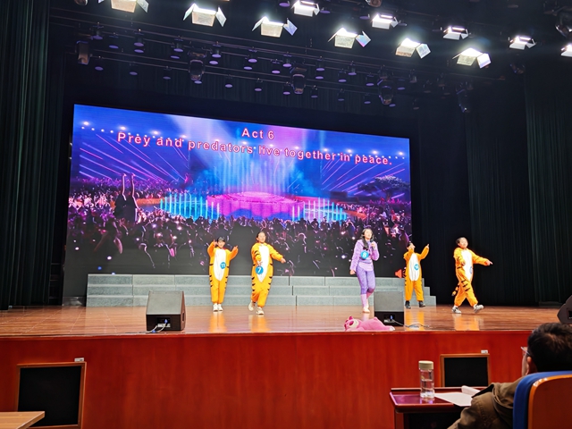 江宁区谷里初级中学《孔雀东南飞》、宏运中学《神笔马良》、上元中学《刘姥姥进大观园》等剧目,以英语为载体演绎中华经典,彰显文化自信;南京市东山初级中学《书本的午夜派对》、南京紫东江宁学校《杰西卡的穿越之旅》贴近校园生活,传递阅读的魅力与成长的力量;南京方山外国语学校、江宁高新区中学《疯狂动物城》系列剧目聚焦包容与正义;横溪初级中学的短剧则以温暖剧情呼吁保护动物、守护家园。