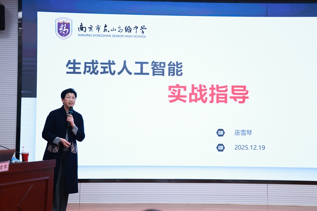 2025年12月19日下午,我校举办“生成式人工智能赋能实战指导”名师菜单讲座。正高级教师、特级教师巫雪琴亲临授课,为全校百余名教师带来一场兼具理论深度与实践价值的AI教育盛宴。教科室王婷副主任主持了活动。