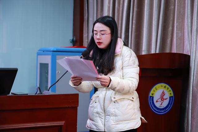 接着,郭晓倩书记作表态性发言。她代表总支对大家的信任表示感谢,将带领大家发扬东外精神,争创一流业绩,进一步彰显东外品牌的影响力,也希望大家发挥好模范带头作用,为东外的发展再立新功!