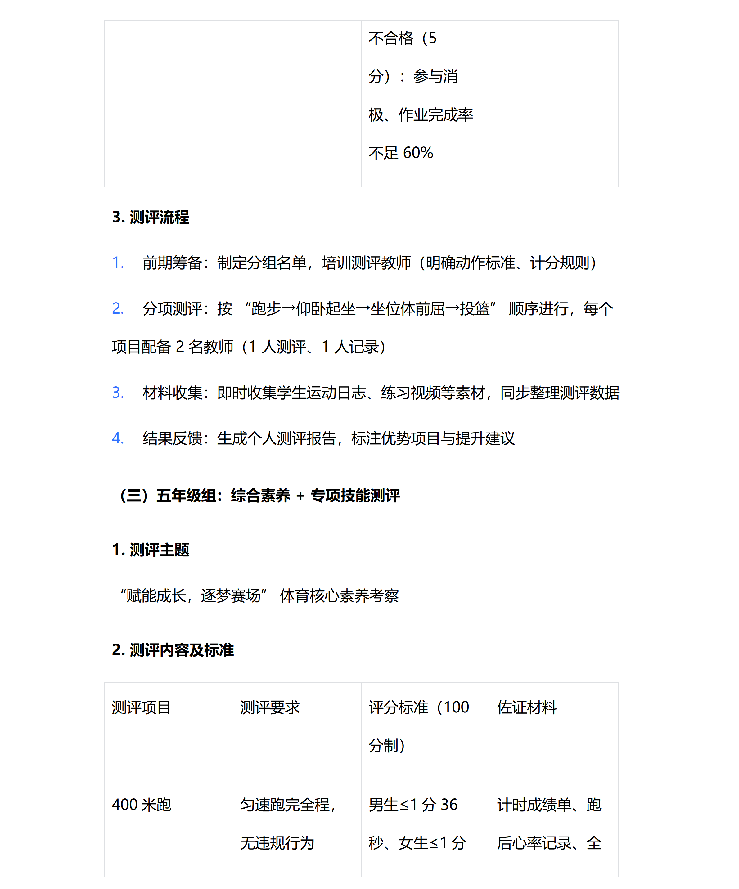 2025-2026学年度第一学期东外小学部体育考评方案