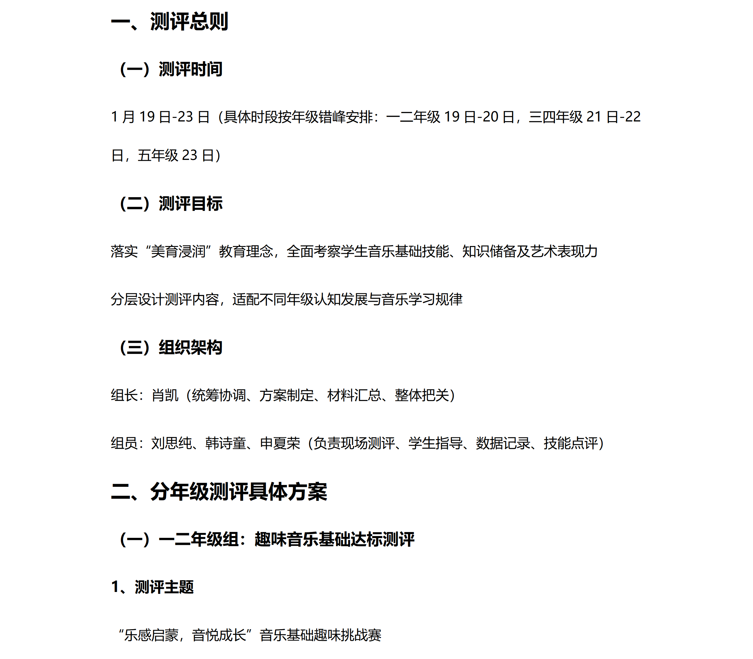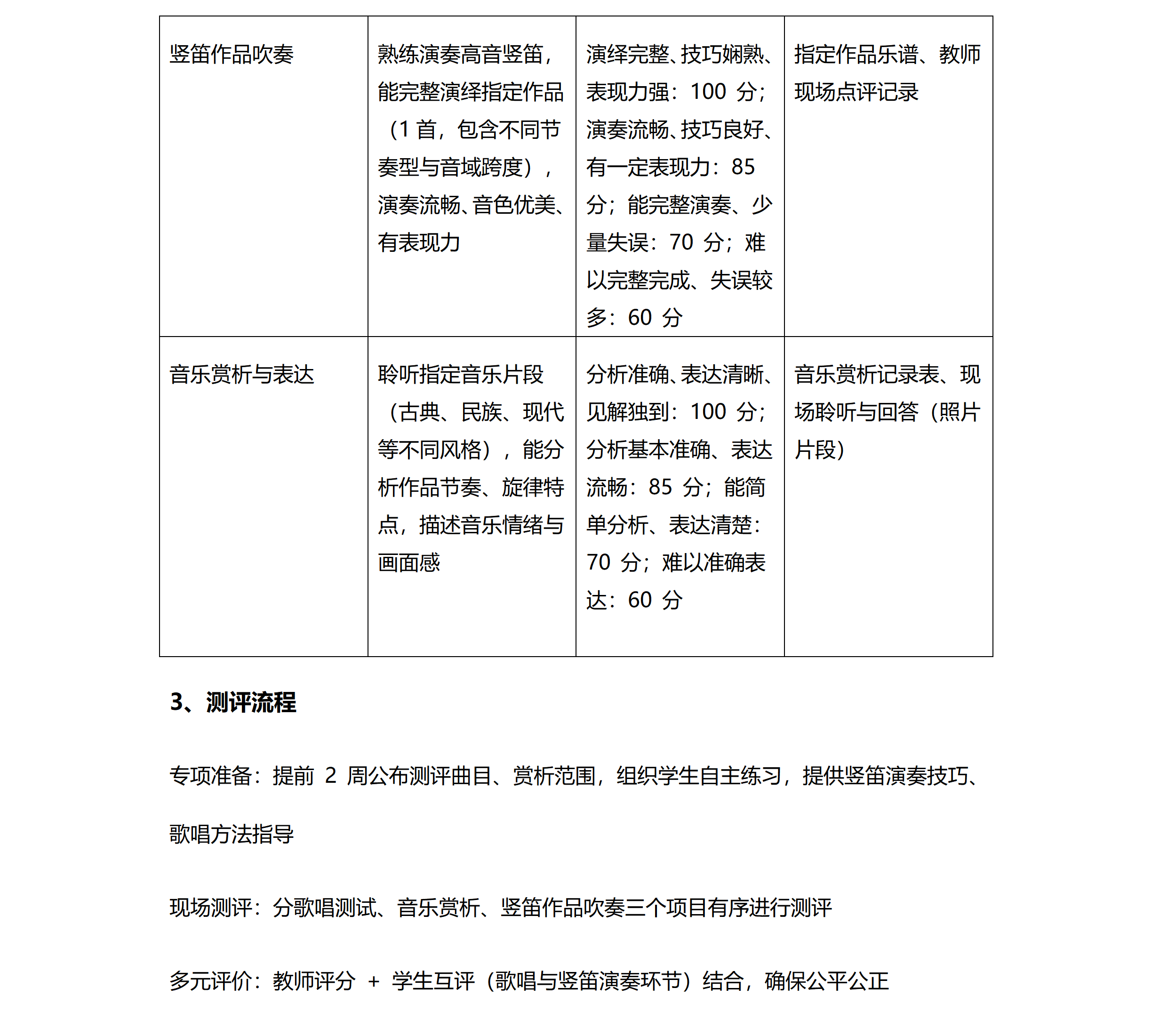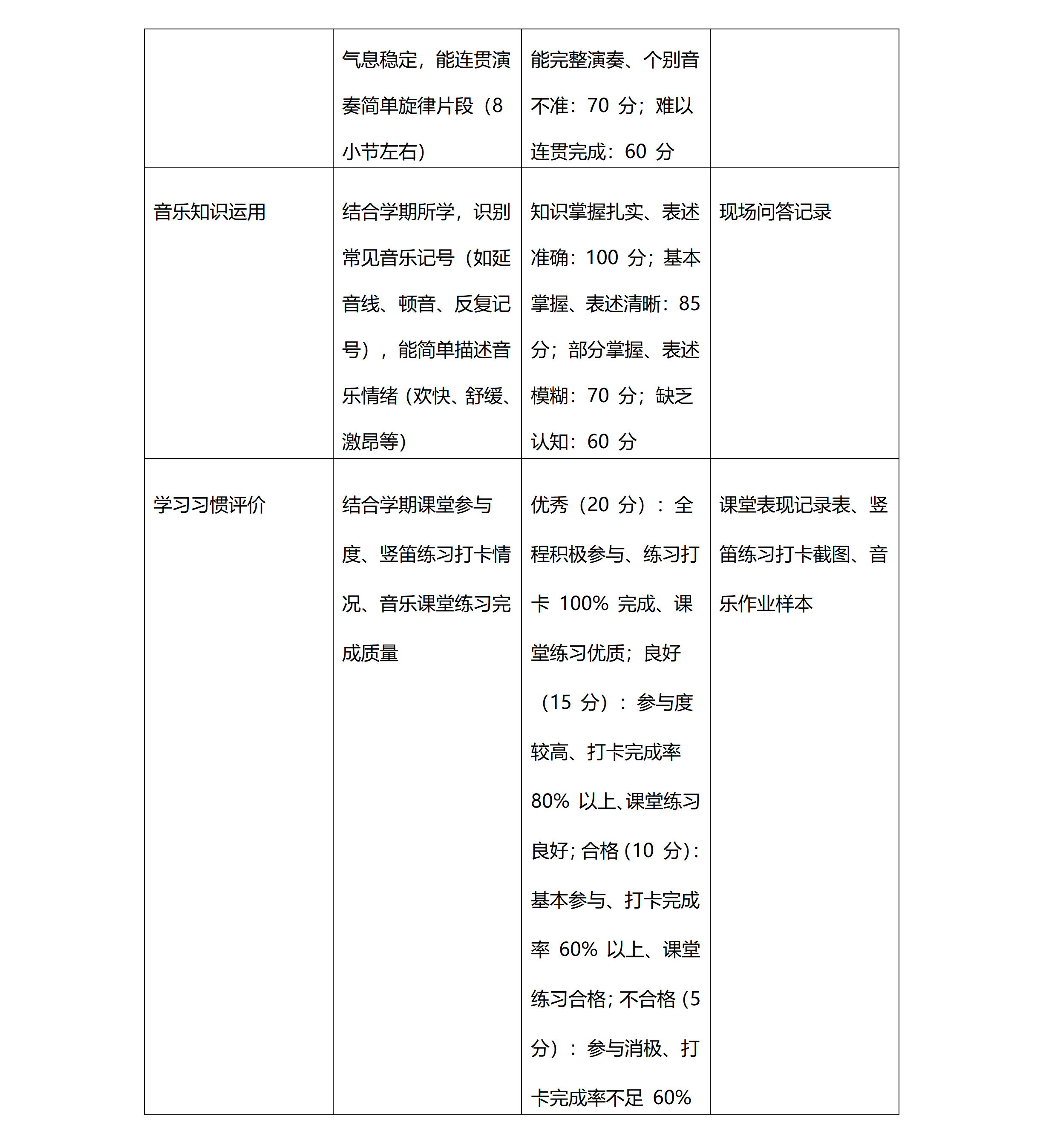 2025-2026学年度第一学期东外小学部音乐考评方案